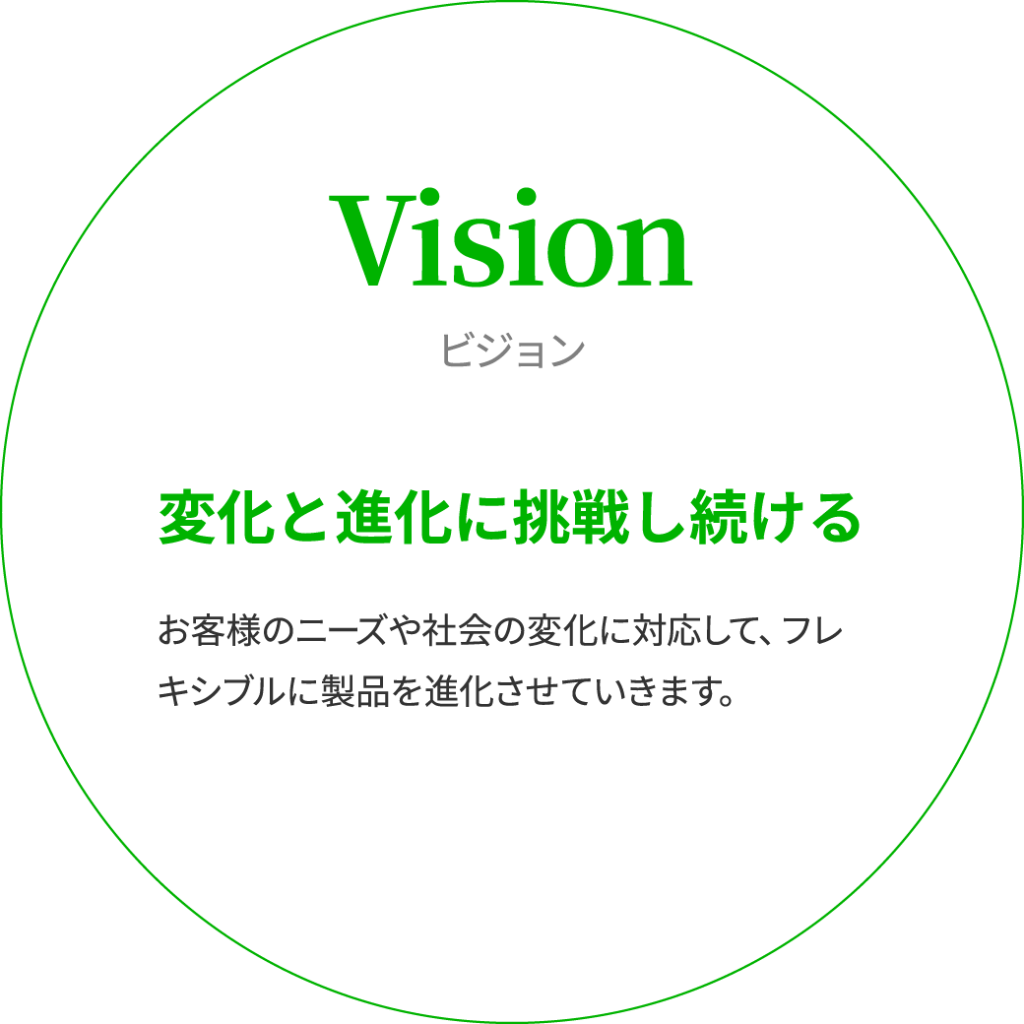 金型製作から機械部品加工の量産へ。その後、精密板金設備や汎用機の設備投資を重点的に行い、流通店舗の店内什器製造の需要増加にいち早く対応。主力商品のセグメントを時流に合わせた経営戦略でシフトしています。社会の変化やトレンド、御取引先様のニーズに合わせて変化と進化を続けます。
